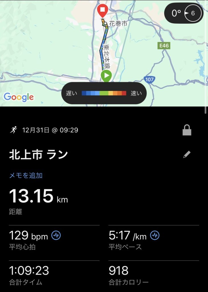 こんにちわ。今日はクリニックから花巻駅まで走ってみました。年内最後なので20kmぐらい走ろうかなと思っていました。これまで花巻には数回しか行ったことがなく北上から花巻まで20kmぐらいかなと勝手に予想して走ってみましたが、結果的にはかなり短かったですね。4号線を走っていましたが途中で雪風が強くなりました。ほぼ同じ時刻に携帯の電池が殆どなくなり、地図を確認できなくなり道に迷いました。寒くて13kmぐらいで走るのを辞めました。年内最後になりました。来年度もよろしくお願いします。